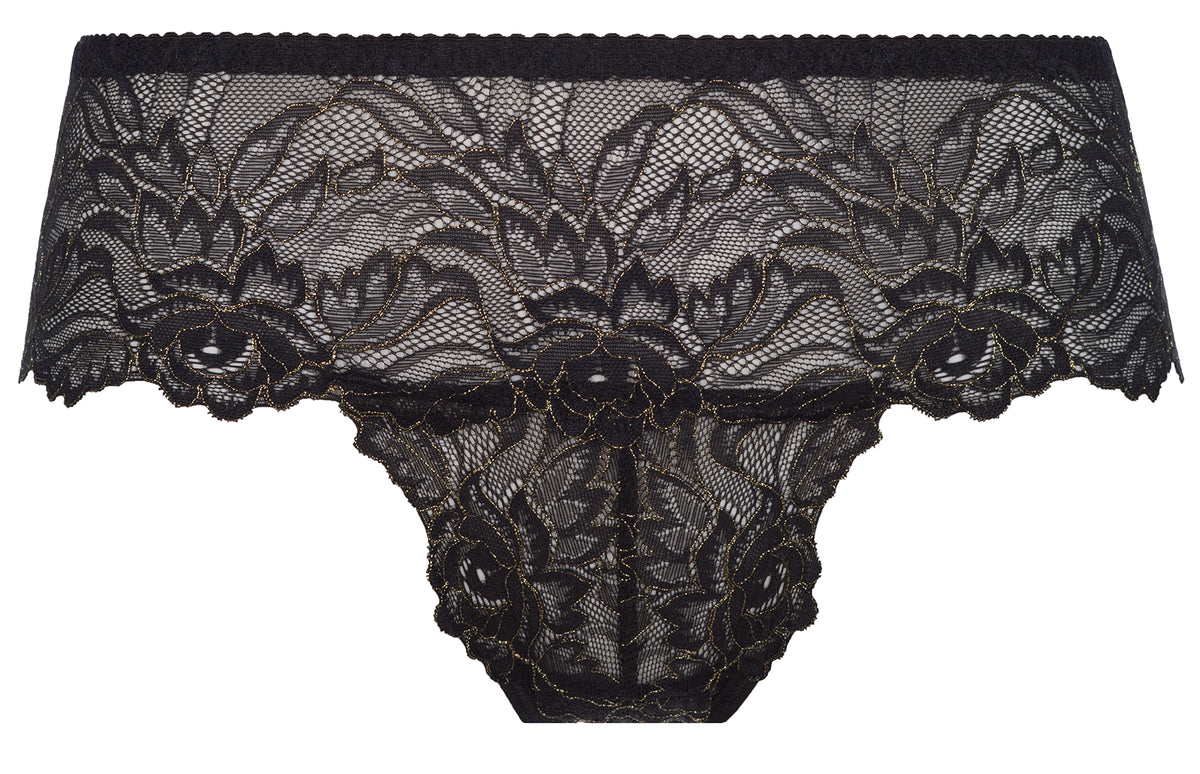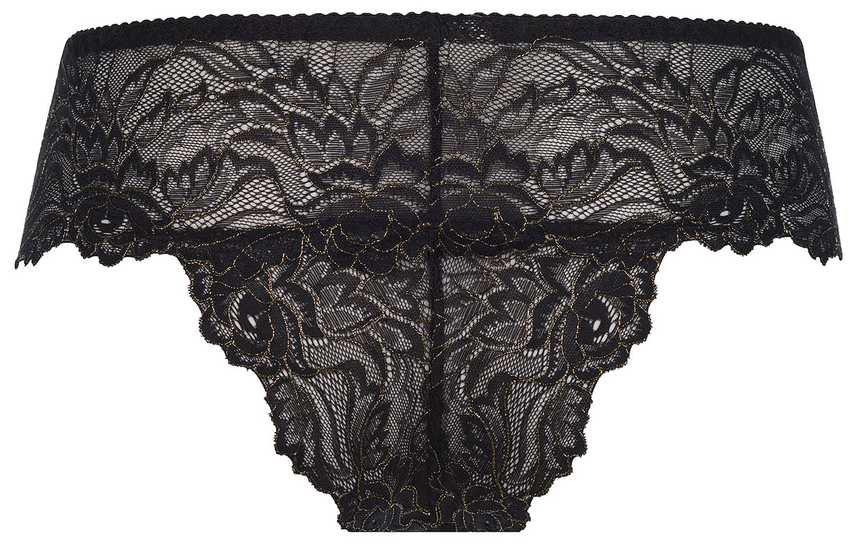 Elegant and sensual golden-black string Brazilian V-8265 will seduce you by openwork lace and modern cut. No one will resist you!