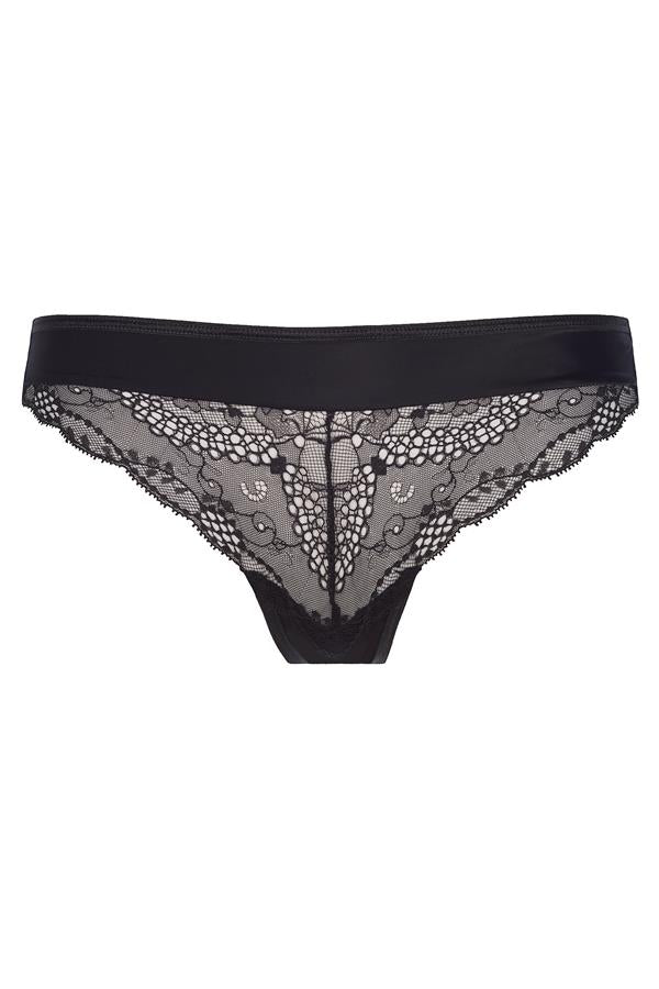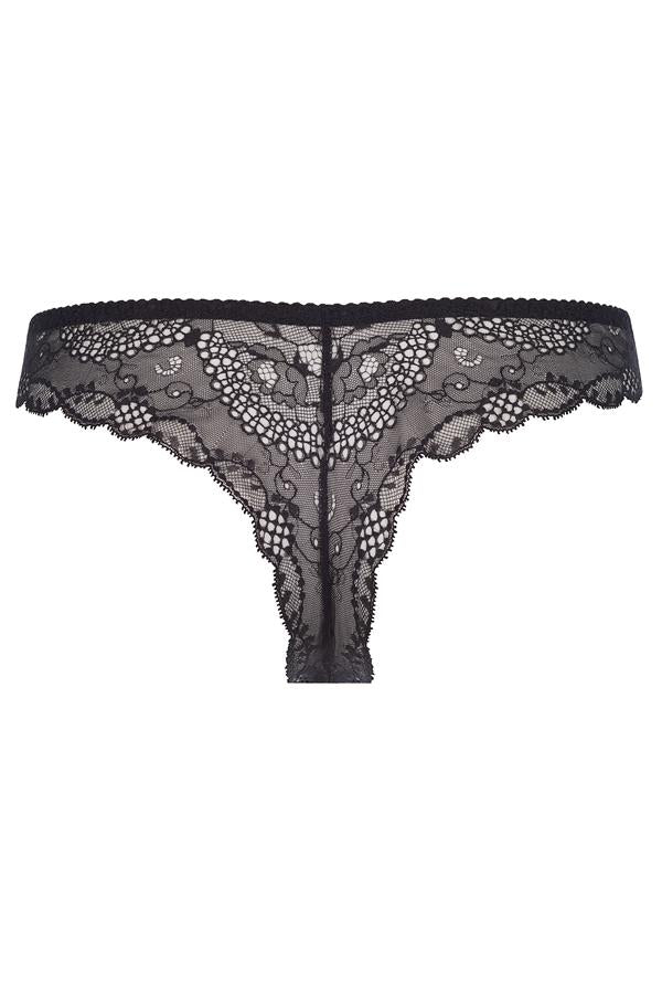 Elegant and sensual black string brasiliana Fondant au chocolat V-7695 will seduce you by openwork lace and modern cut. Now one will resist you!