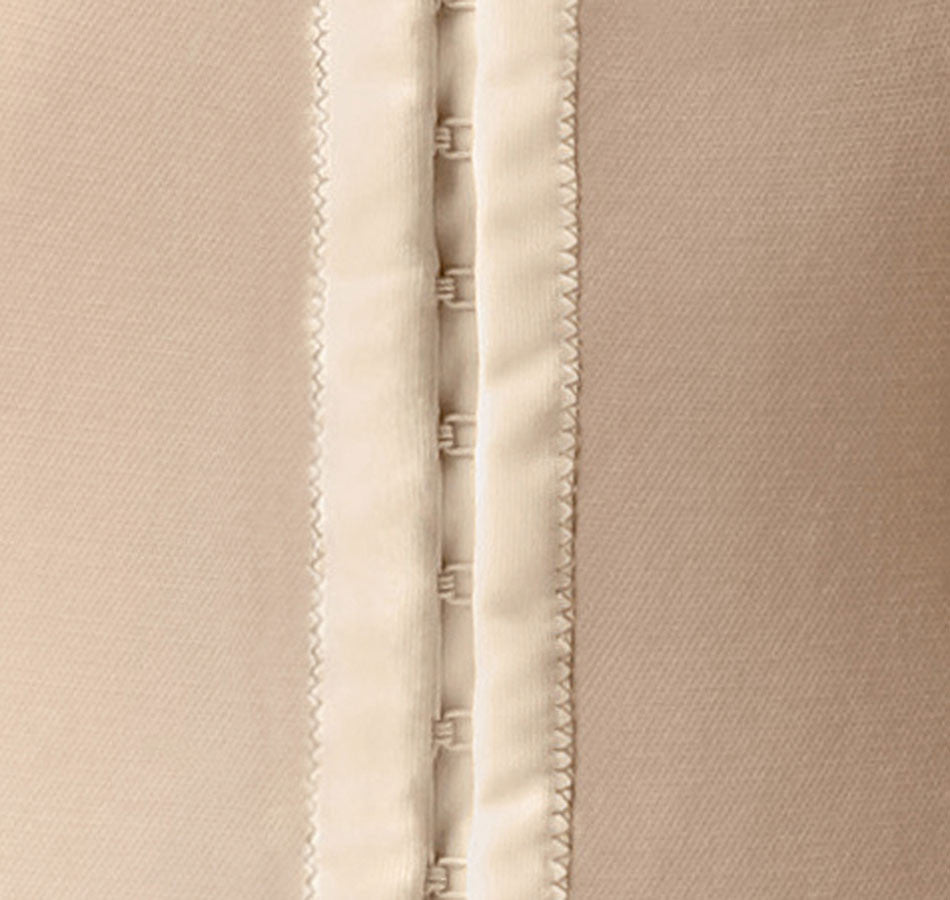Strong slip compression, hook closure with triple adjustment. Corset with support slats, locking hooks.