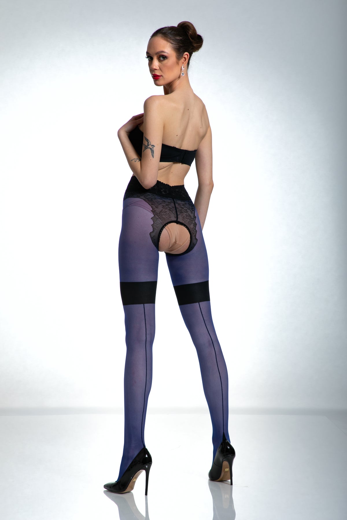Amour Diva Contrast Back Seam Patterned Pantyhose Open Crotch 30 Denier