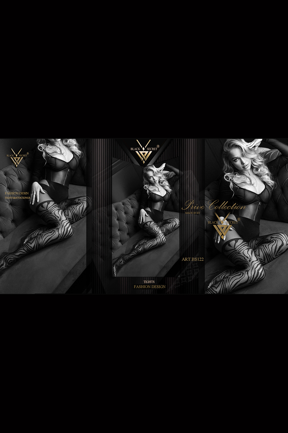 Unleash your wild side with the brand-new Prive Black Secret Animal Print Tights by Ballerina. These striking tiger print pantyhose combine charm, sensuality, and high fashion with their distinctive and eye-catching design. The sheer 20 denier two-tone animal print pattern starts at the toes and seamlessly transitions into a mock suspender effect at the upper thigh. Enjoy the look of stockings and suspenders without the hassle, thanks to the clever design that mimics a garter belt. For a provocative touch, these patterned pantyhose feature an open gusset area, offering health benefits and adding an element of seduction for intimate moments. Pair these bold and flirtatious crotchless tights with a sexy black bodysuit and an A-line skirt for a date night or with a mini dress for the perfect party look. Made from 82% Polyamide and 18% Elastane.