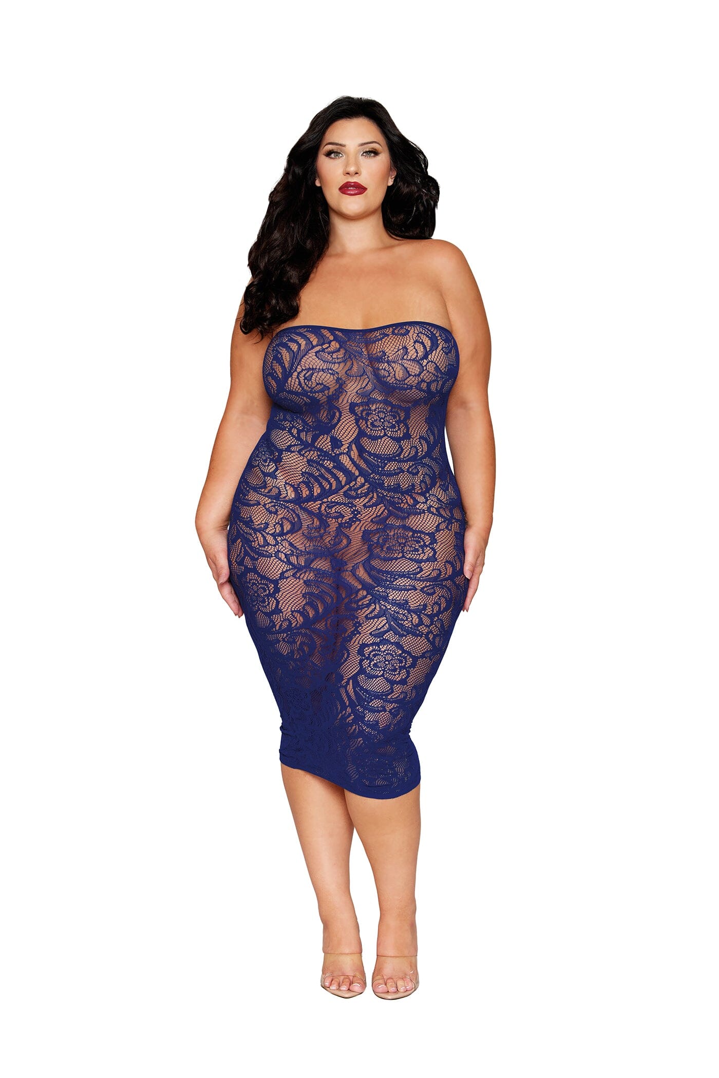 Seamless bodystocking gown and matching shrug with floral pattern design