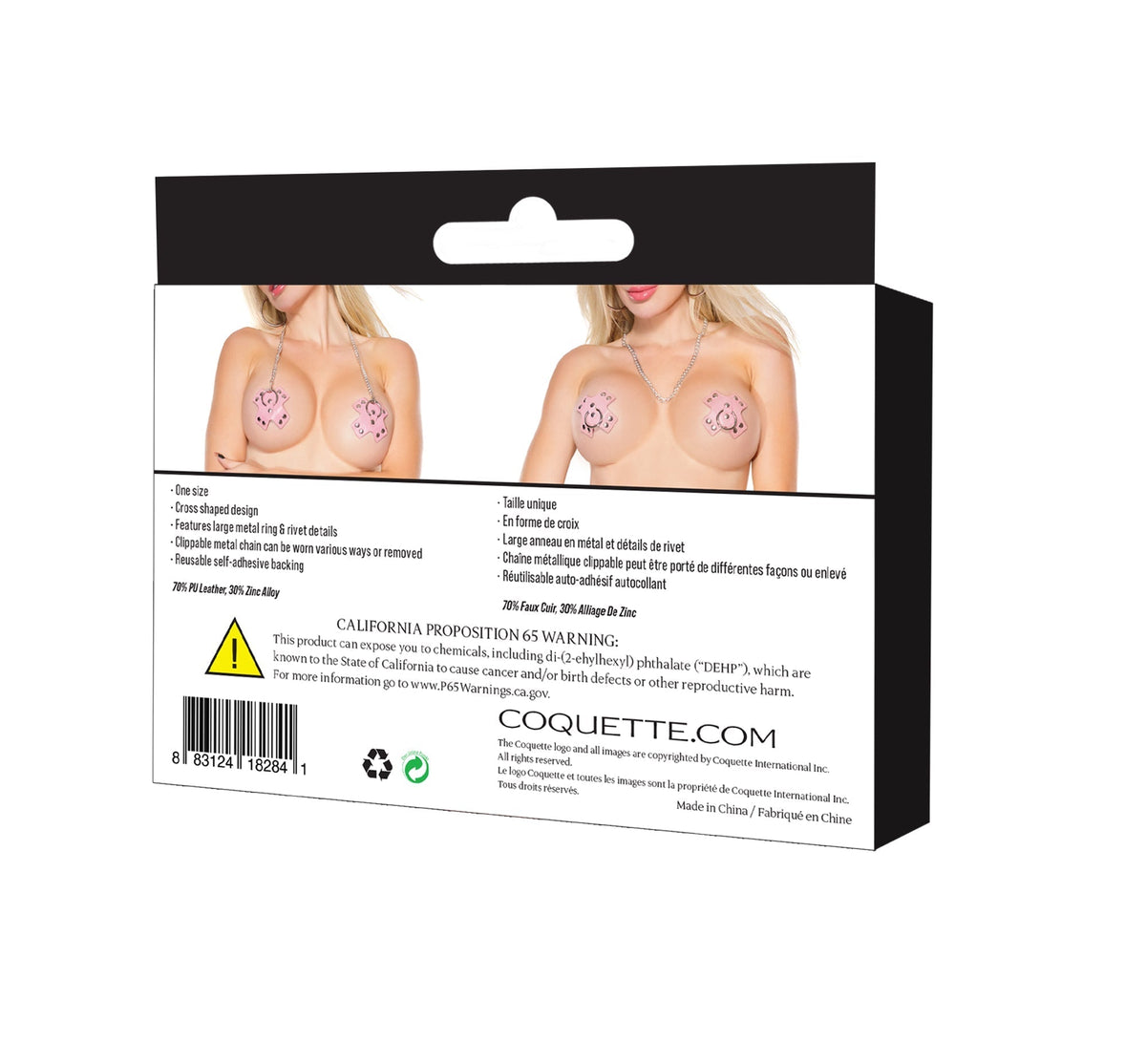 Unleash your daring side with Kinky Link Studded Cross Pasties featuring a bold cross-shaped design, large metal rings, rivet details, and a versatile clippable metal chain. Crafted from high-quality materials for a comfortable and secure fit.