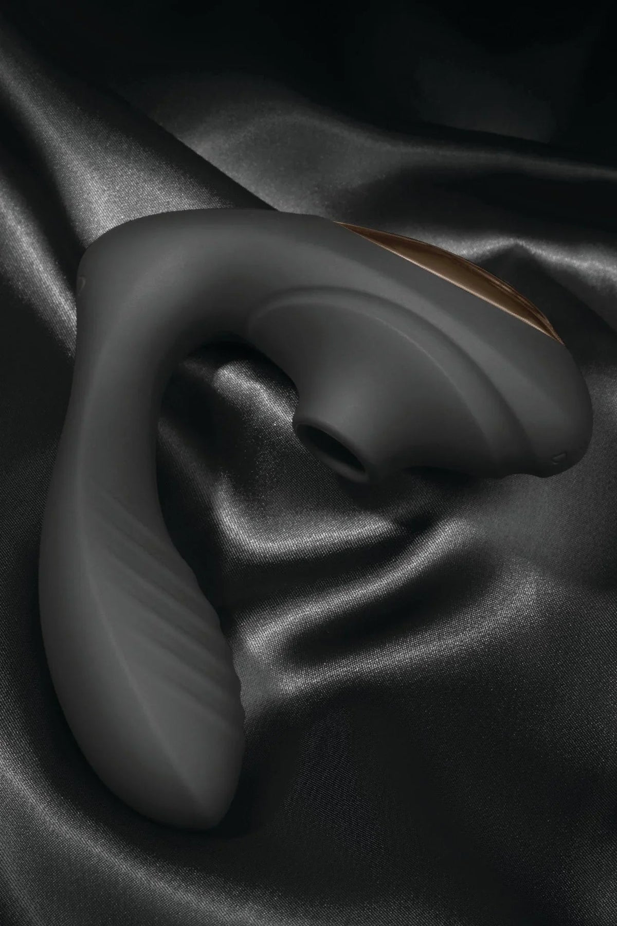 Indulge in luxurious pleasure with The Royal Embrace Dual Stimulator. Thanks to its flexible design and high-quality silicone, this massager provides simultaneous G-spot and clitoral stimulation while the 10 internal vibration and 10 external intensity levels give you an amazing range of sensations. Enjoy the gentle clit-sucking air pulse sensation and customize your perfect combination of pleasure. Its rechargeable motor provides long-lasting enjoyment and a smooth, easy-to-clean surface. Get ready for a royal experience!