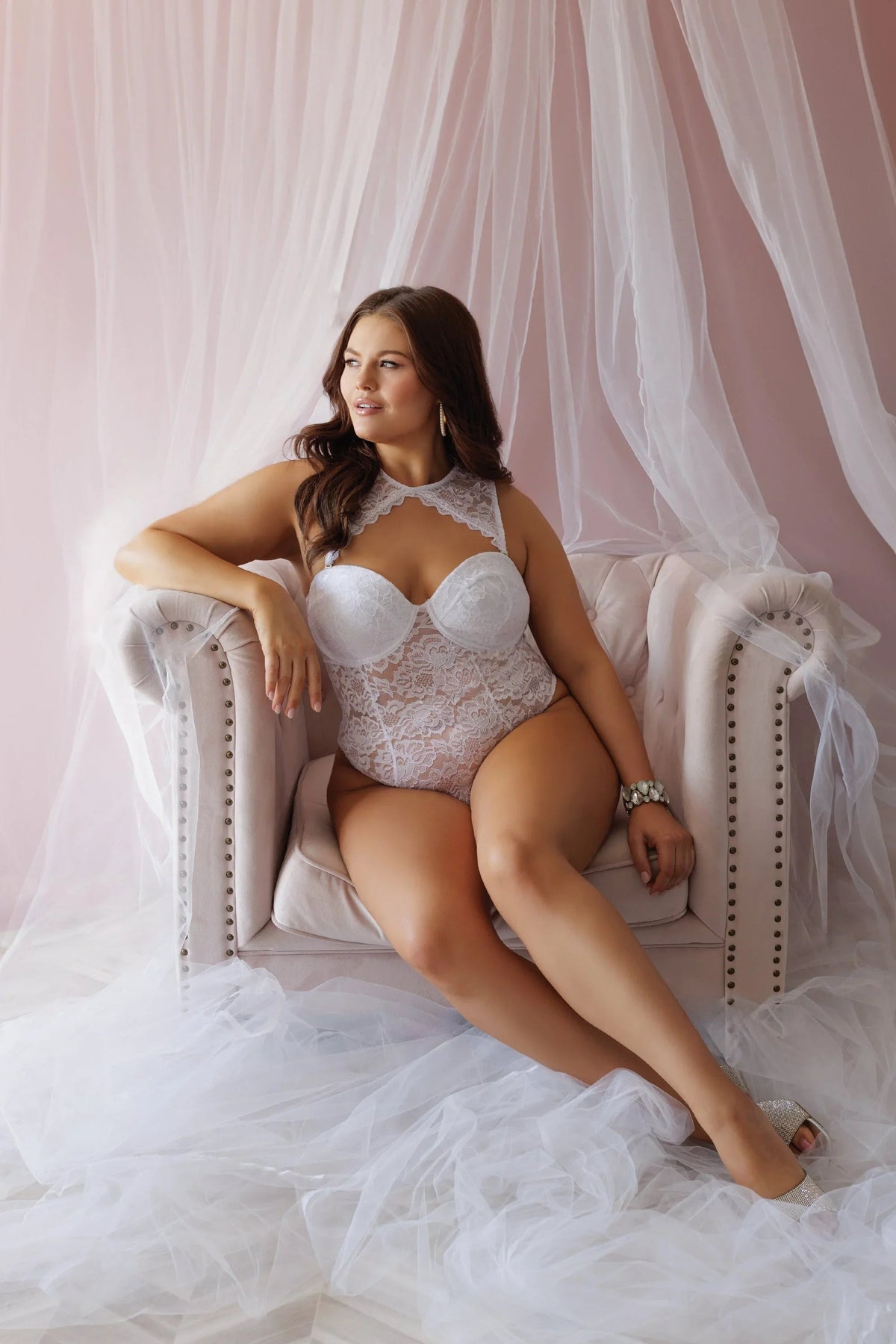 Introducing the Forevermore Teddy - a sophisticated and versatile teddy made from luxurious materials for ultimate comfort and elegance. Features lightly padded underwire cups, removable lace neck piece, keyhole detail with hook and eye closure, hookable thong back, and removable straps for a perfect fit. Gold toned hardware adds a touch of opulence to your ensemble. Embrace your inner goddess with Forevermore Teddy.