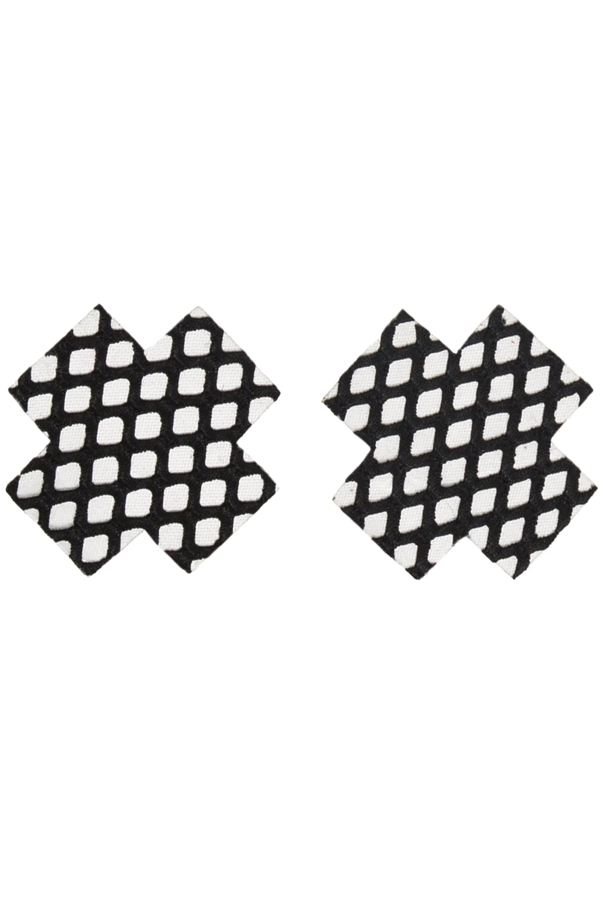 The Big Flirt Pasties are bold and flirty cross-shaped, flat pasties with a daring fishnet design. Each pasty features a large fishnet pattern for a sultry, edgy look that's designed for one-time use, perfect for making a statement.