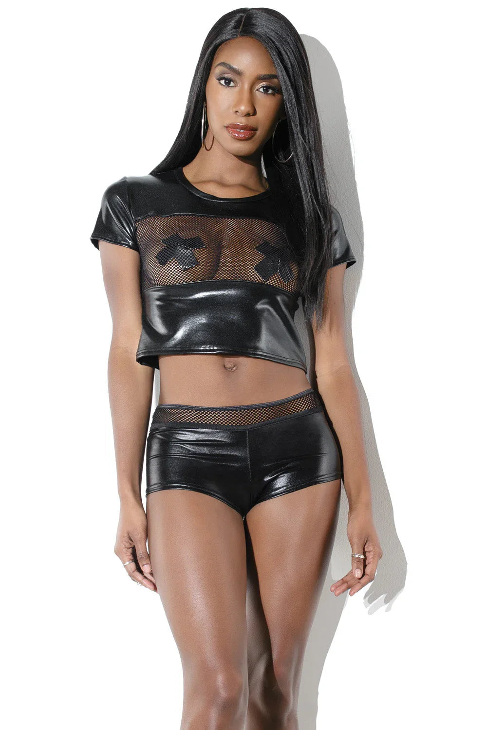 - Wetlook & fishnet crop top
