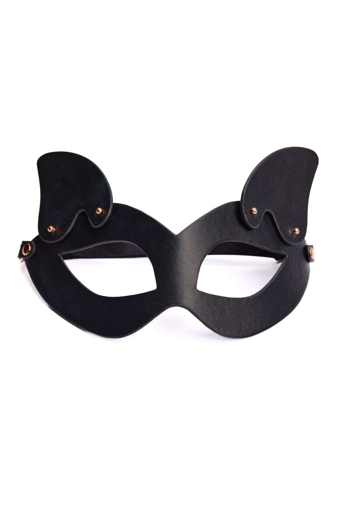 Transform into a daring kitty with the Feline Fatale Mask. The adjustable elastic strap ensures a comfortable fit, while the removable ears add versatility to your look. Featuring metal grommet details and an embossed logo, this mask will elevate any costume or playtime.