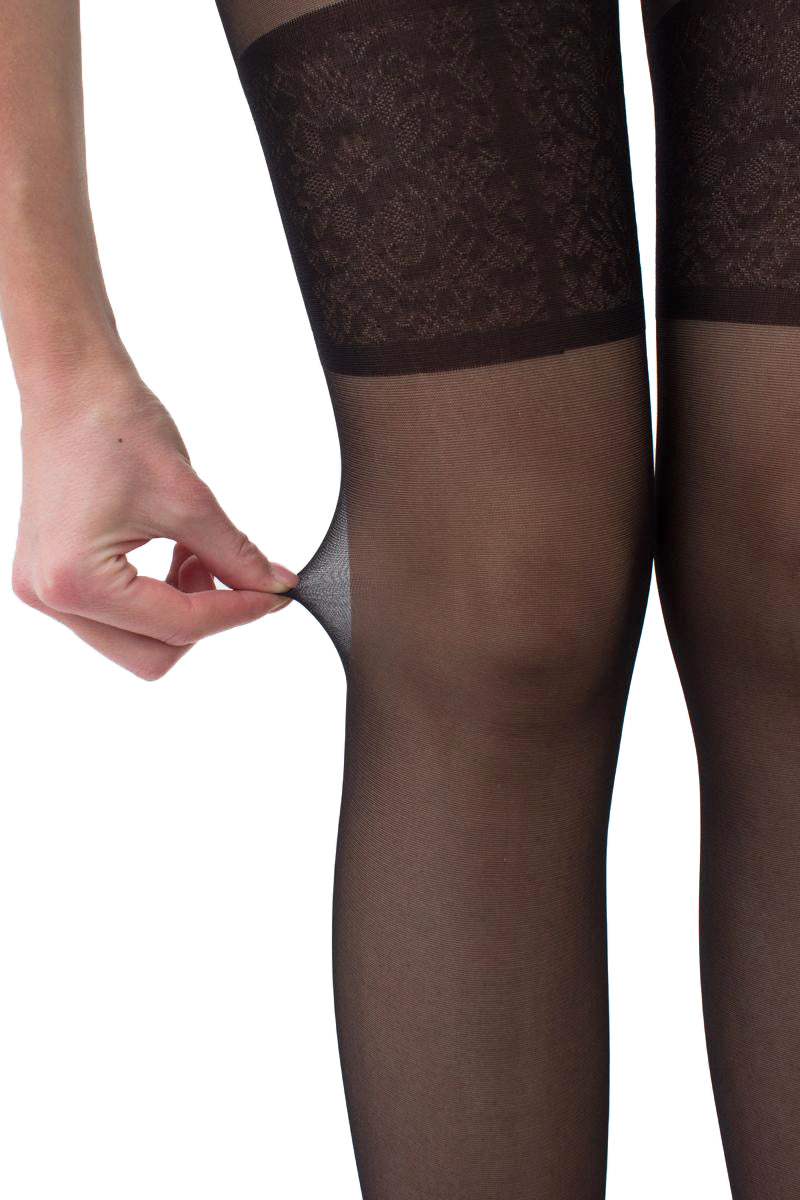 features a stunning lace pattern that covers the hips and upper thigh with a suspender strap imitation. A classic look with a smooth texture, they’re perfect for feeling sexy in any outfit.