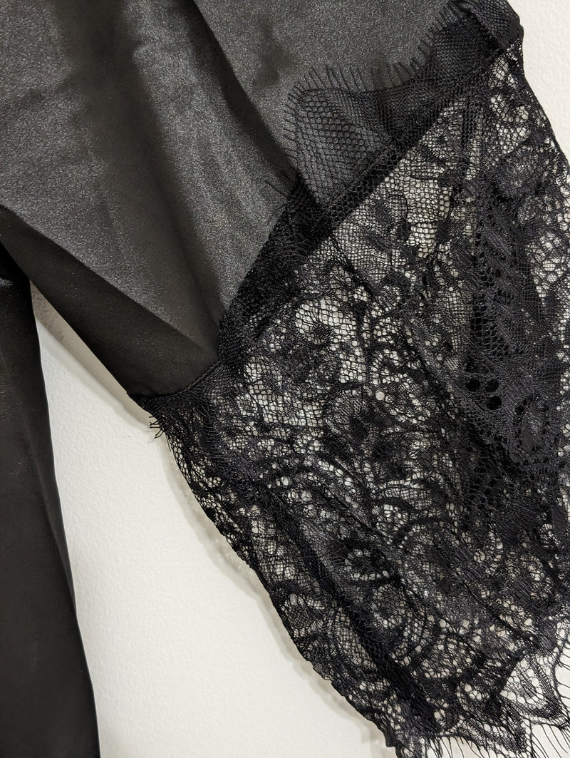 CLEARANCE - Satin Robe with Lace trim and Satin belt and Matching G-String