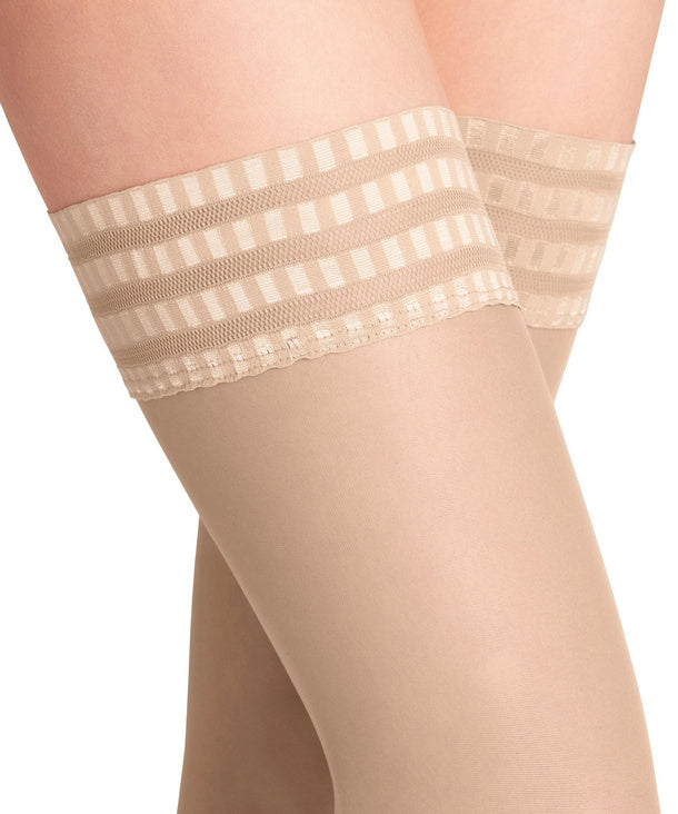 Pure and uncomplicated. The transparent stay-up with a matt effect for beautiful, elegant legs. The elegant leg material is decorated with a lovely garter strap. 20 den appearance. Silicone coating makes it absolutely non-slip.