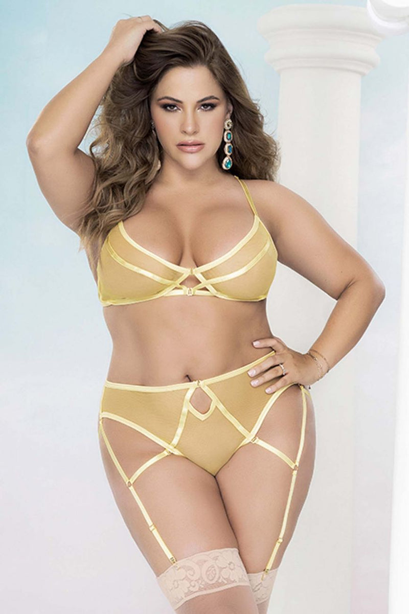 Mapale 8221X Three Piece Garter Set Color Ivory