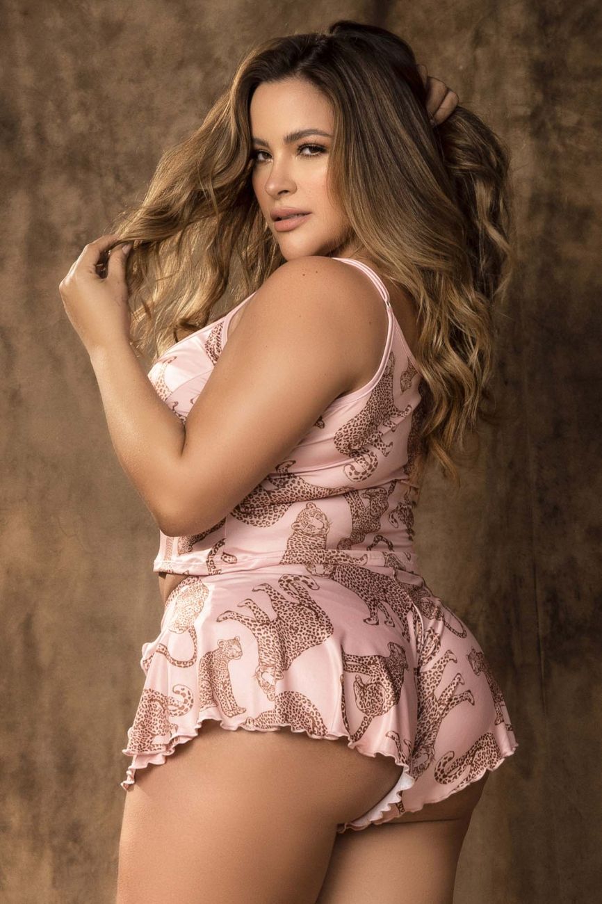 Two-piece set in an original wild print: Top with adjustable straps and Matching flared shorts