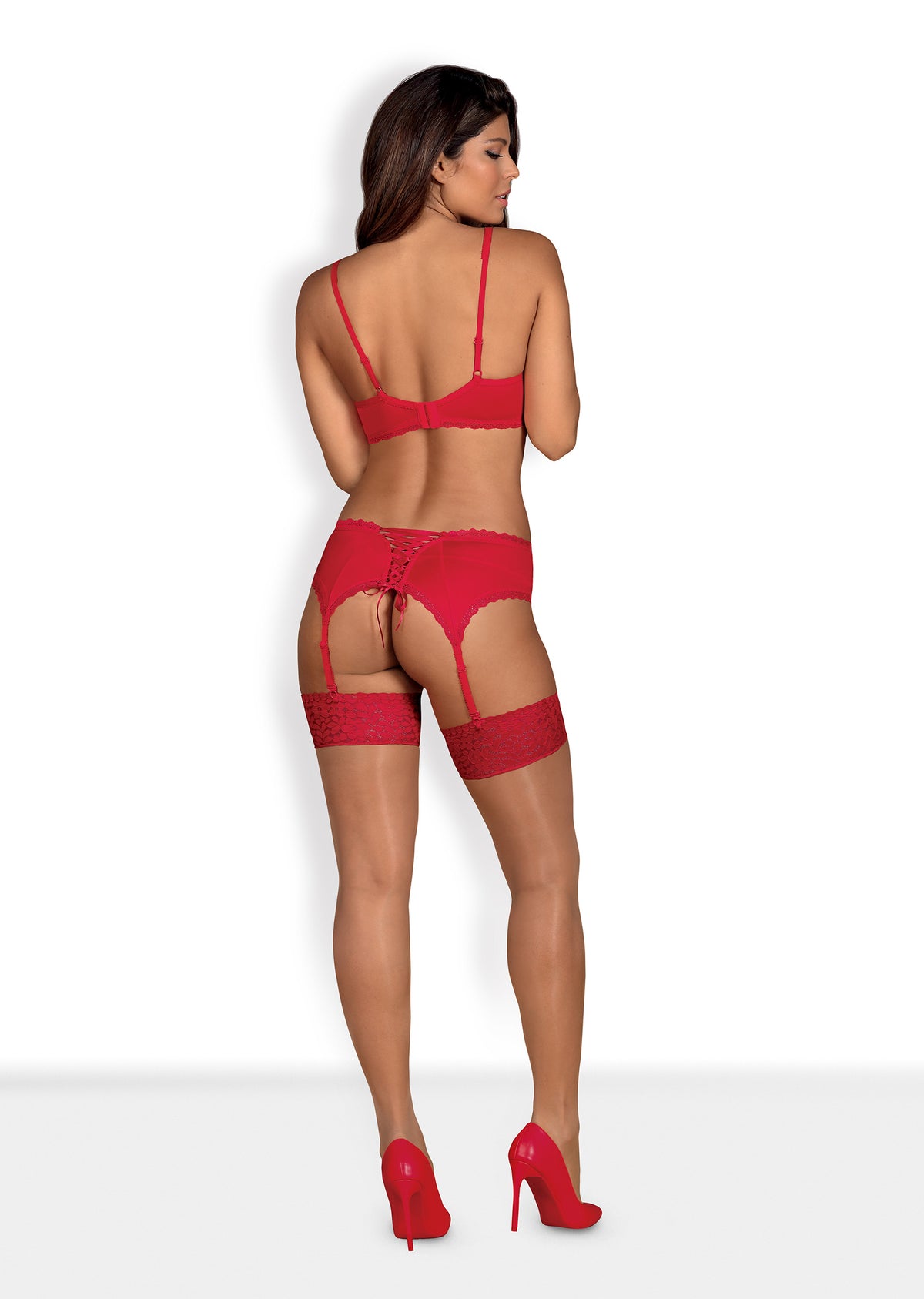 Want to spice up your valentines lingerie set? The Jolierose stockings by Obsessive are the perfect addition, featuring sheer nude legs and floral lace bands at the thighs. The Jolierose stockings are not self-supporting thus should be worn with a suspender belt to ensure perfect hold.