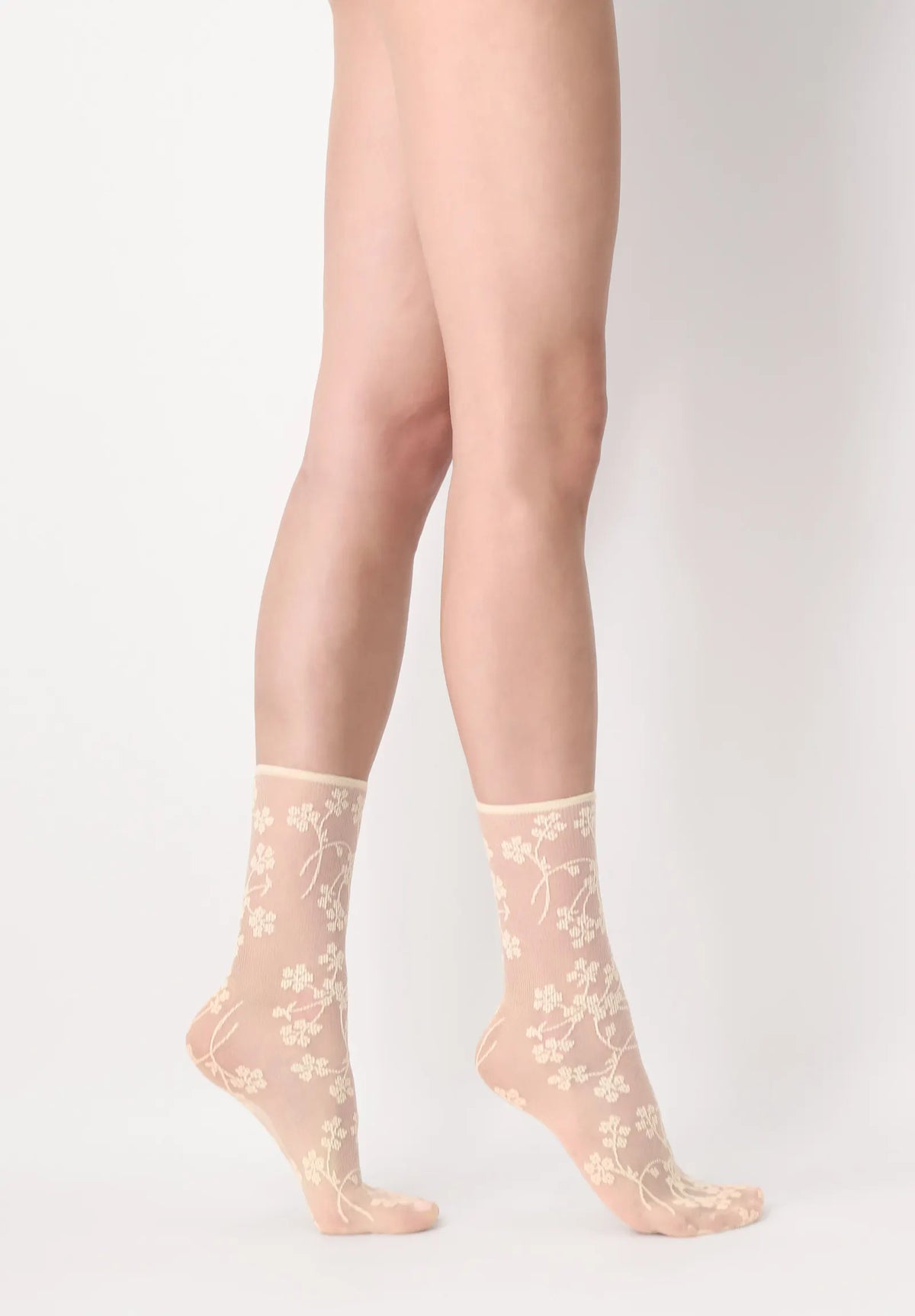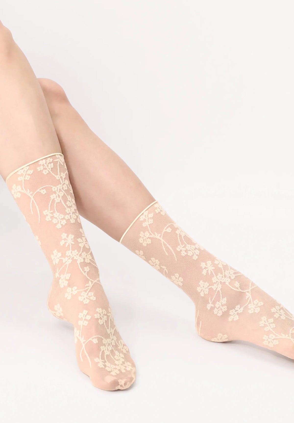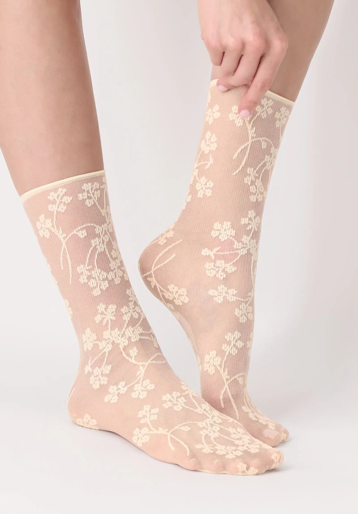 Embellish your wardrobe with our sheer sock, decorated with a pretty floral pattern. This delicate and refined accessory features a raw cut cuff, giving it a touch of modern, minimalist elegance. Perfect for any occasion, the Oroblù sheer sock is ideal for those who want to combine style and comfort in one garment.