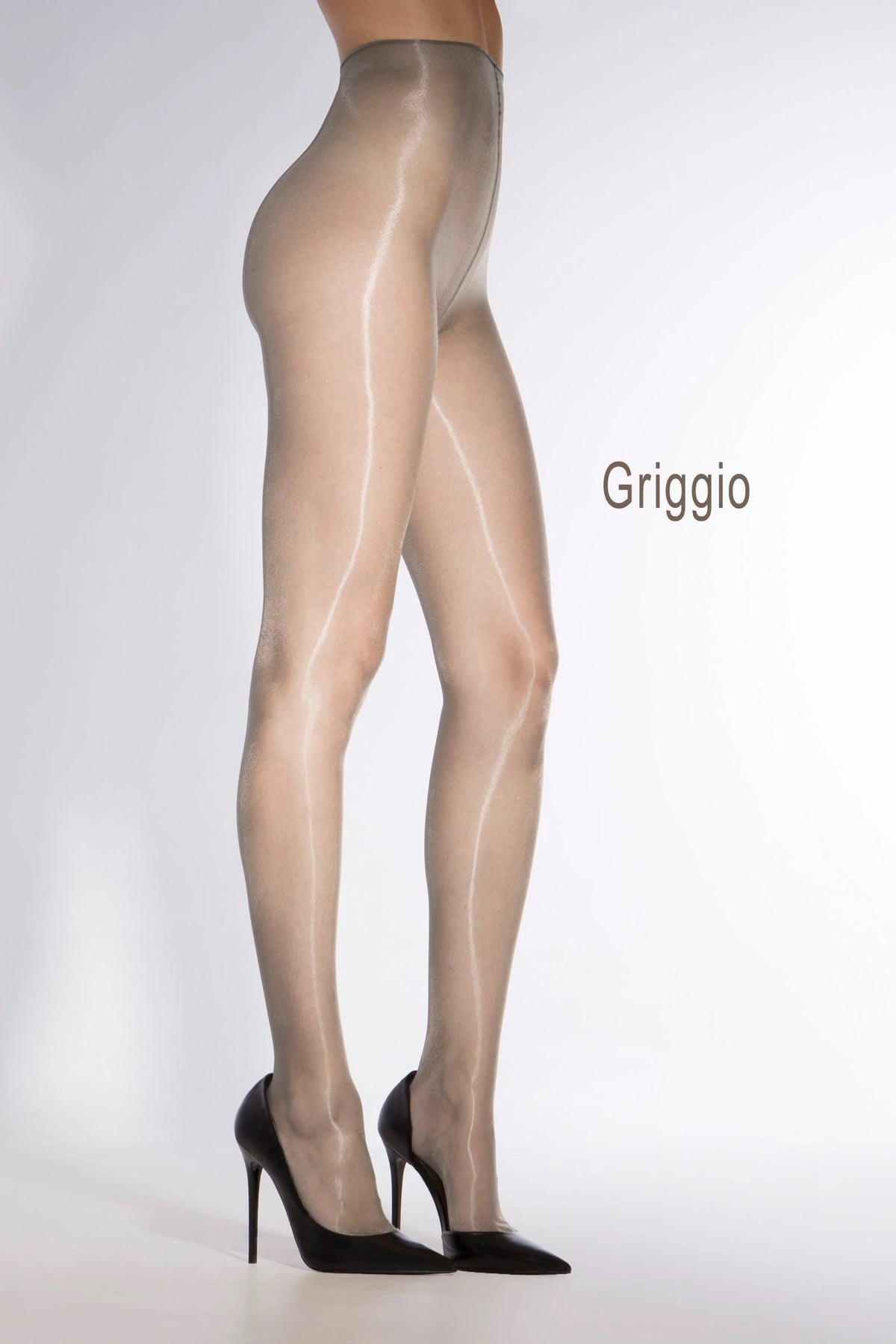These smooth gloss tights from Cecilia de Rafael have a beautiful shine from toe to waist. With a 15 denier finish and no waistband, there is a light and free feeling to wearing these tights. These features create a super comfortable style, making Eterno an innovative, sleek design. Finished with Cecilia De Rafaels famous oil shine finish these tights give your legs a lovely polished look. Also includes a sandal toe and cotton gusset for ultimate wearability.