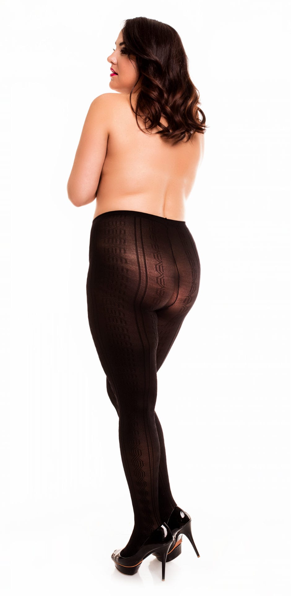 The Marea 70 Pattern Tights, has a helix pattern. These opaque, matt 70 denier, has an extra wide brief and thigh area. Very comfortable to wear, perfect fit, flat seams and reinforced panty and toe.