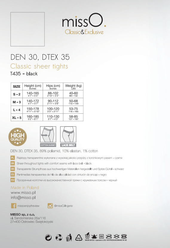 MISSO Classic and Exclusive Sheer Pantyhose 30 Den T435