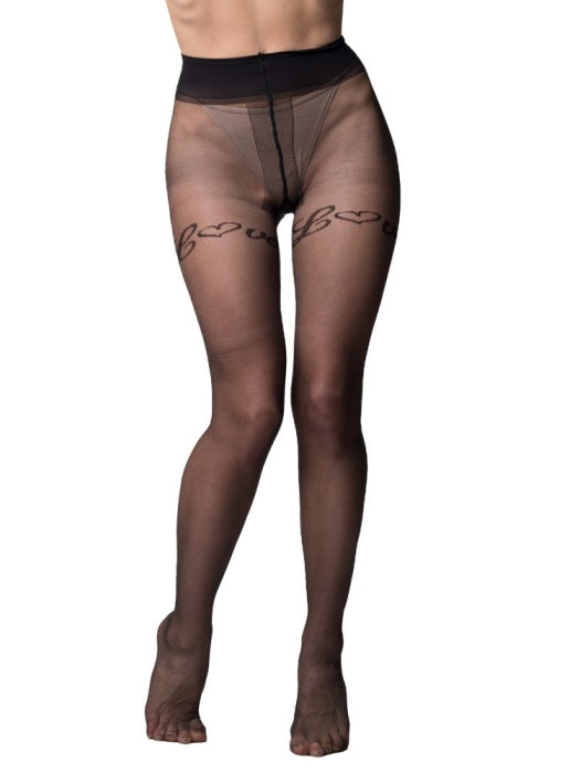 Feel the romance in the air with the Trasparenze Antares Back Seam Tights—the perfect blend of sexy and sweet for your wardrobe. These 20-denier sheer tights feature a timeless vintage-inspired black back seam running from waist to toe, creating an elongating and alluring silhouette. Adding a unique touch, the back of the thighs and calves are adorned with "Love" script, complete with charming red hearts for a hint of elegance and romance. Choose the Cosmetic shade for a natural look or the Black shade for a classic, bold finish. Designed for comfort, these tights feature a smooth waistband, a cotton gusset, and flat seams for a discreet fit under tight clothing. Style them with a mini skirt or dress to highlight the stunning details and eye-catching back seam.
