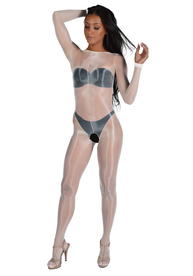 Pearl & Poseidon Miranda -Glossy Long Sleeve Bodystocking Open Crotch