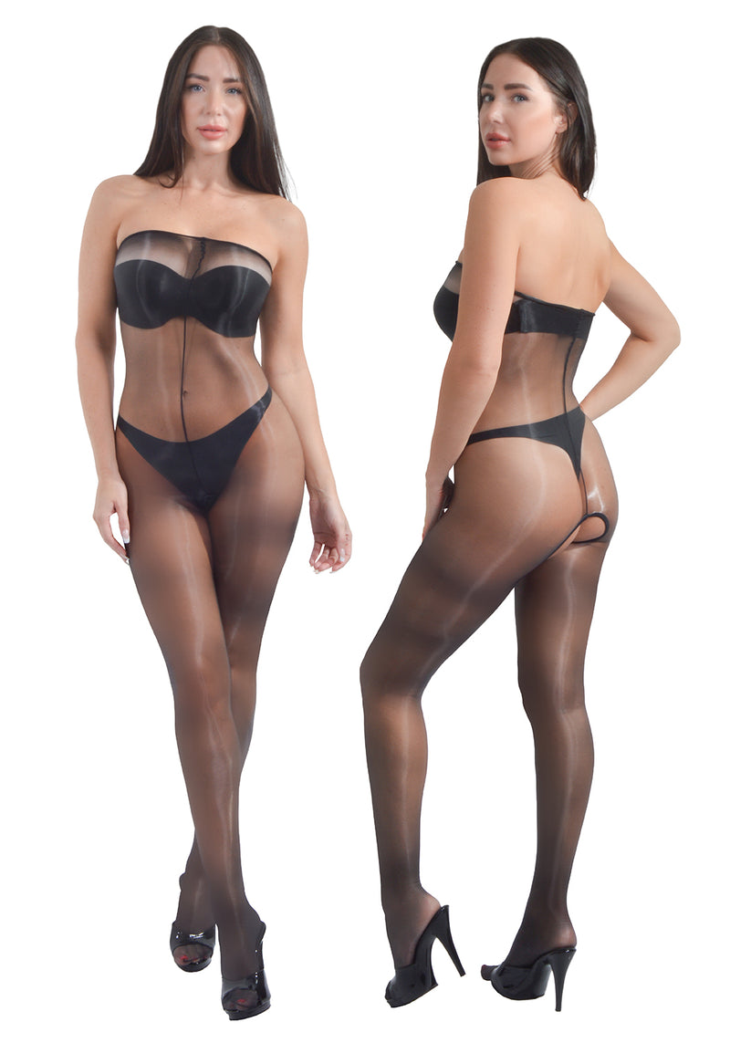 Pearl & Poseidon Desponia -Chest High Ultra Shine Pantyhose Open Crotch