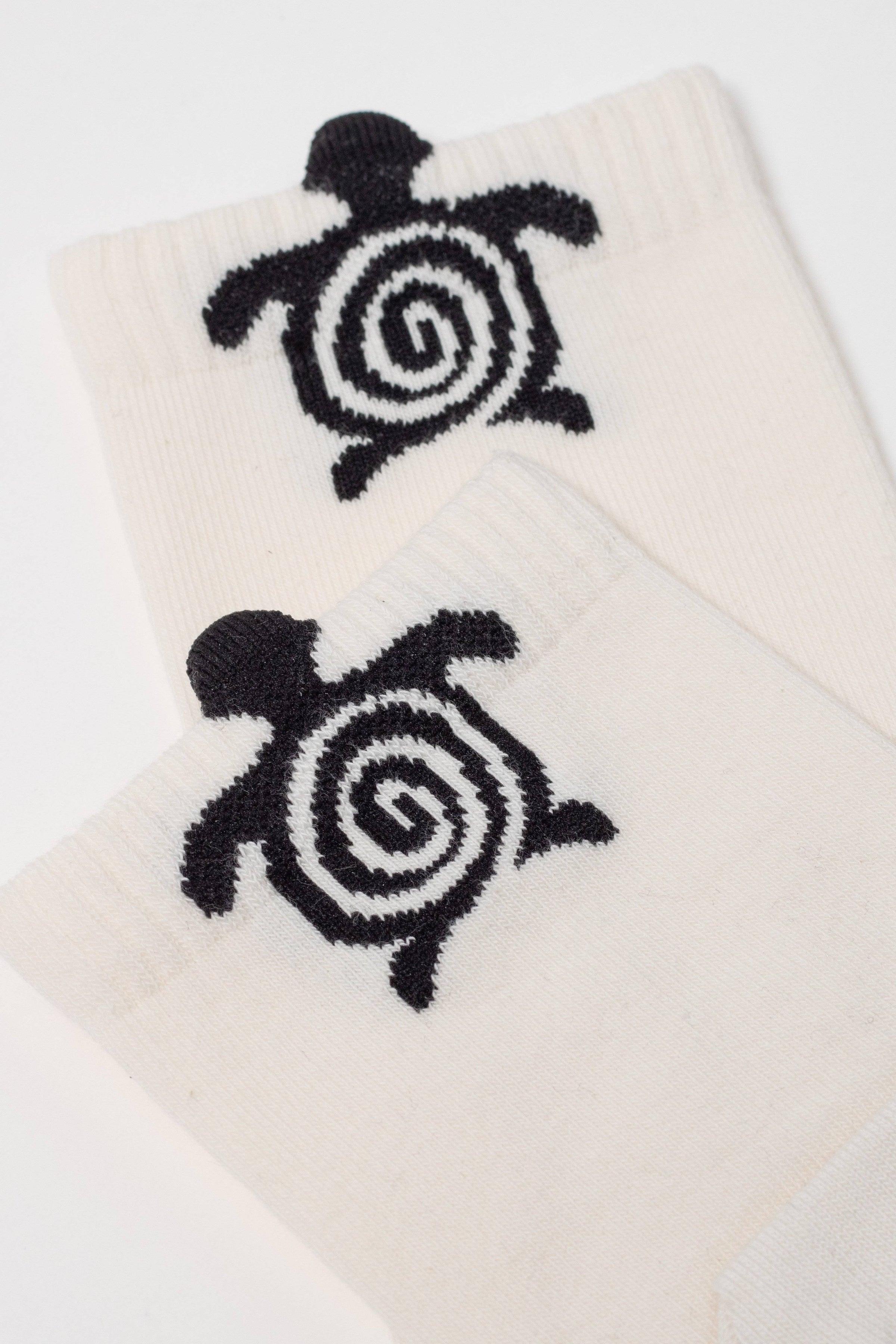 The Cotton Socks CLASSIC feature a playful turtle design with a spiral shell on the heel, bringing a lighthearted touch to your everyday look.