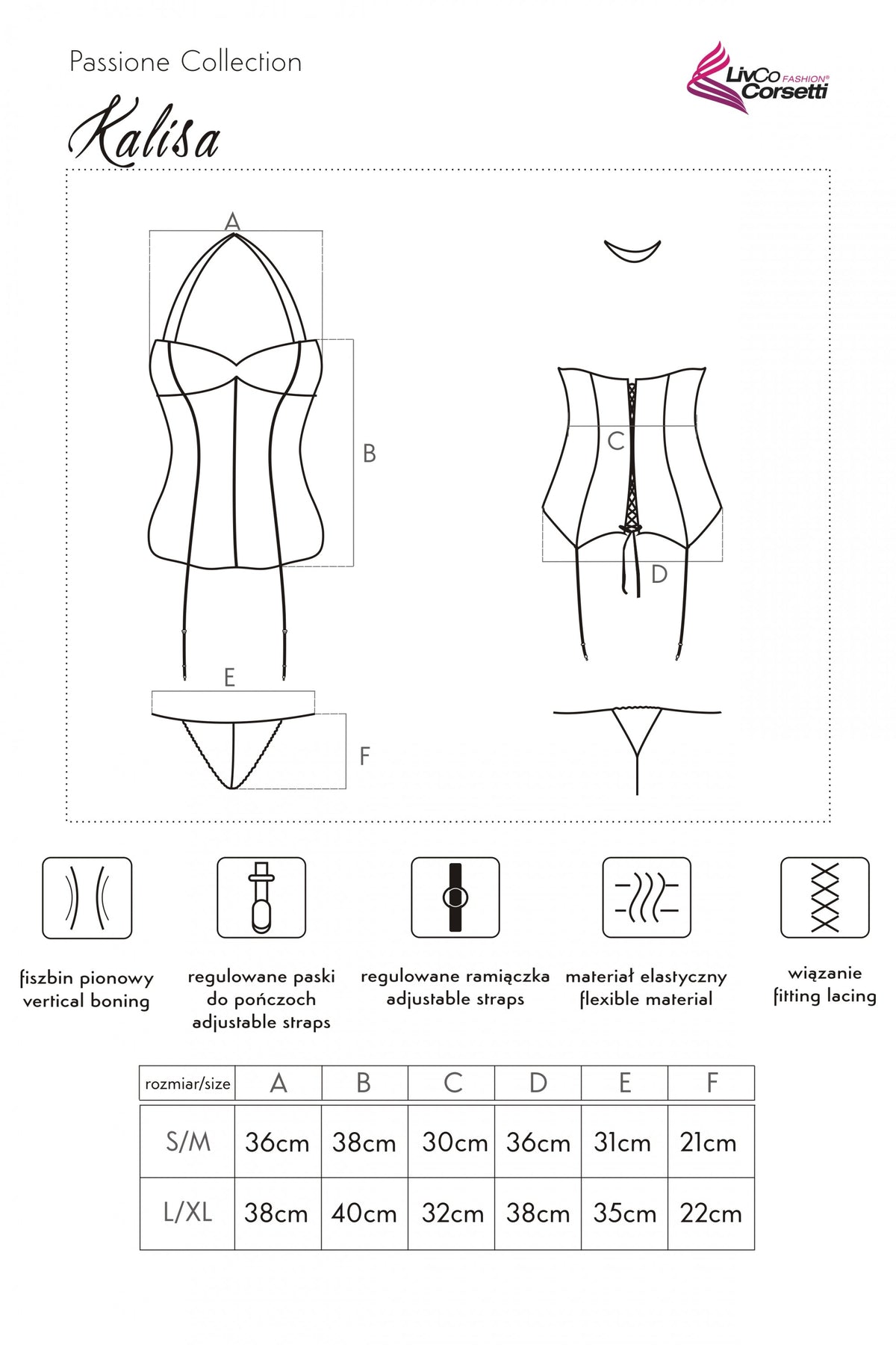 LIVCO CORSETTI Kalisa Boned Corset, Detachable Garter Straps and Thong Set