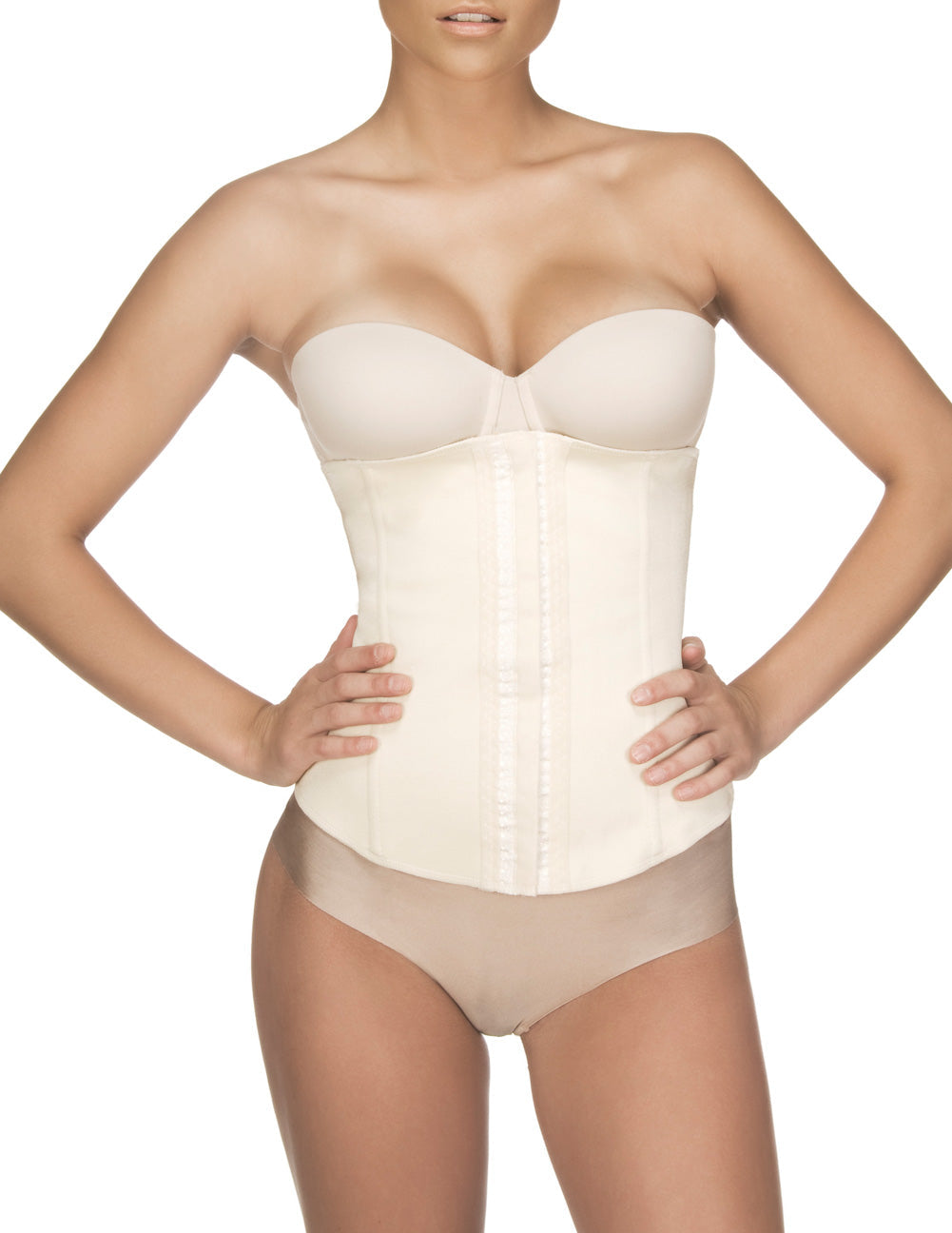 - Focus on the waist. Envelopes your figure, thus giving you sensual curves and a slimmer waist. It has hook-and-eye front closure for security while giving you unique compression.